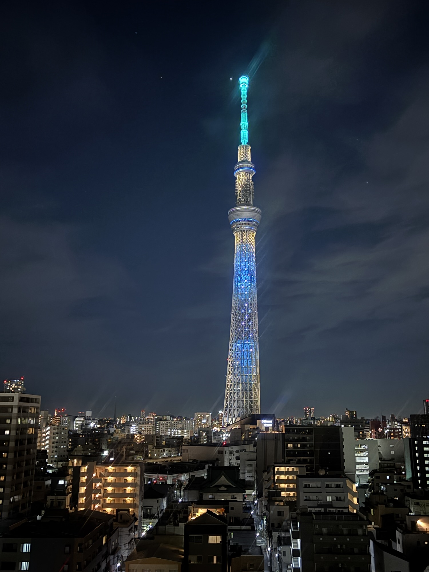 ひとりスカイツリーの色が変わるのを待つ。